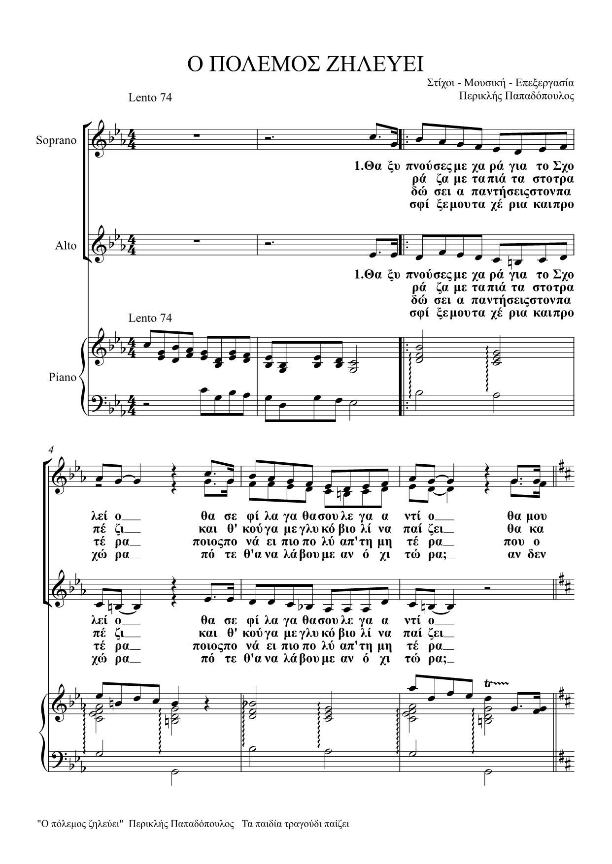Ο πόλεμος ζηλεύει – Παρτιτούρα