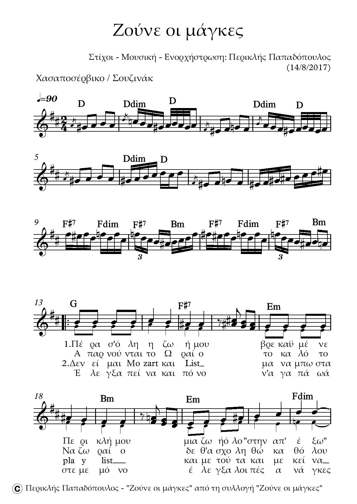 Ζούνε οι μάγκες (Χασαποσέρβικο) – Παρτιτούρα