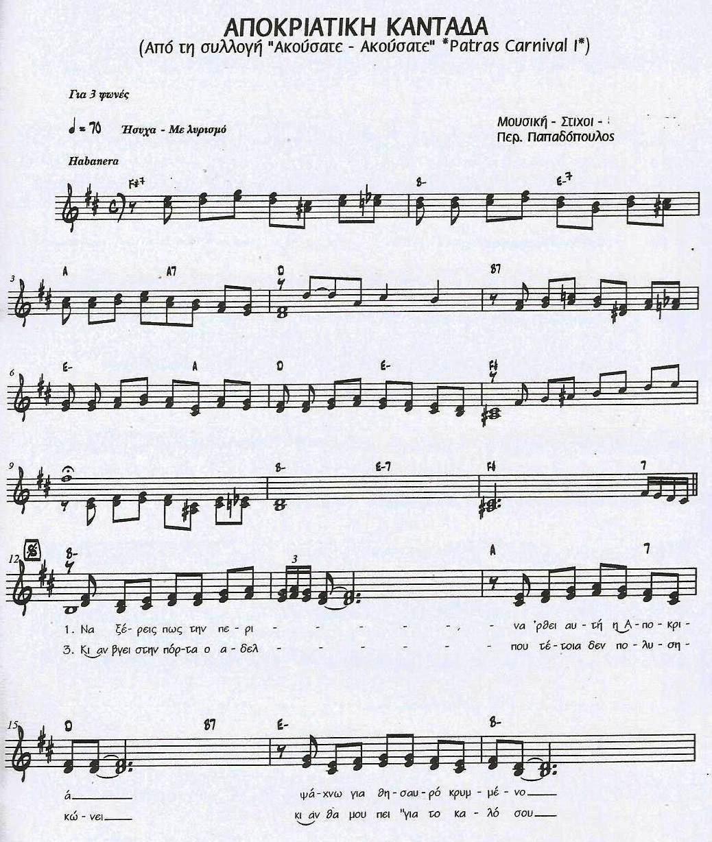 Αποκριάτικη καντάδα – Παρτιτούρα